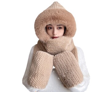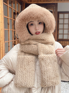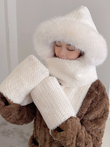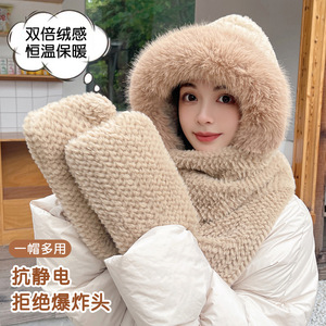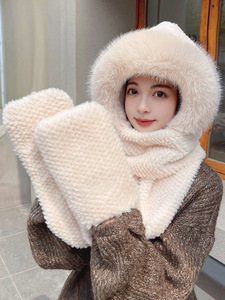 毛绒帽子女冬季骑行围巾手套一体骑车护耳保暖大头三件套保暖帽