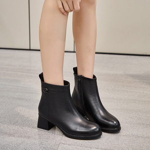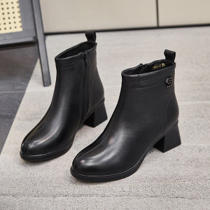 一層牛革製ファッションショートブーツ 2025秋冬新作 イギリス風 裏起毛 ソフトレザー 快適でおしゃれな万能レディースブーツ