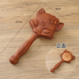 紫檀彫刻湾曲ハンドルキツネエアバッグコーム