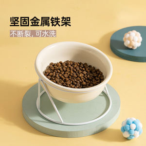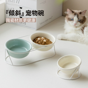 陶磁器の斜口のペットの双碗は頚椎の猫の碗を保護します。
