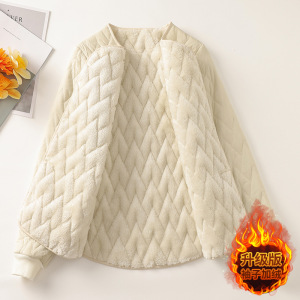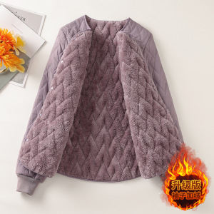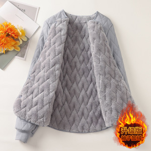 ベルベットの厚い内胆綿入れの女性の短い金2024の新しい冬の底には、小さな綿入れの薄いダウン綿入れの服を着ています
