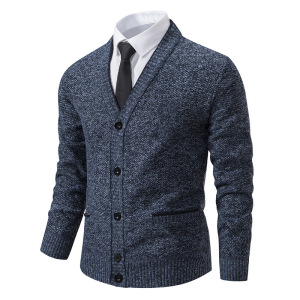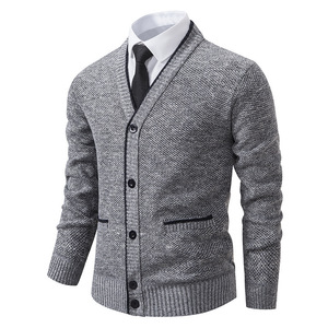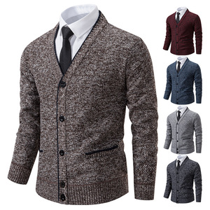 クロスボーダー新型外国貿易秋冬カジュアルベルベットメンズカーディガン長袖青春立襟セーター男性式カーディガンコート