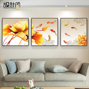 新中国式客間装飾画家と万事興ソファーの背景壁に花を掛けて富貴な寝室の三連壁画を描きます。