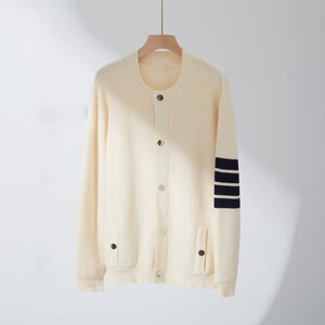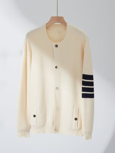 日系色合わせストライプニットカーディガン丸首セーター男性修身ファッションbf風外着ボタンセーター