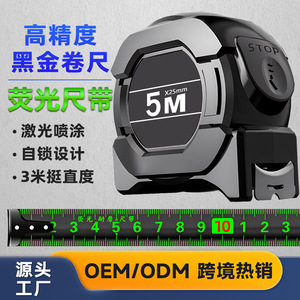 蛍光黒金鋼の巻尺5メートルの耐落下性厚い硬い巻尺10mステンレス高精度耐摩耗性セルフロック箱尺