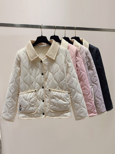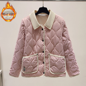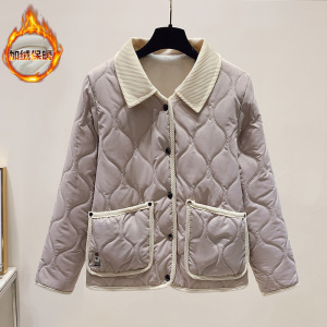 色の小さい香の風の冬の新型の綿入れの服の女性のゆったりしている大きいサイズの百合の外はベルベットを着て厚い襟の小さい綿入れの上着をひっくり返します。