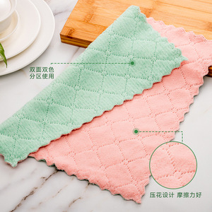 国境を越えた台所の皿洗い布サンゴのベルベットのエンボス怠け者百洁布卸売り多機能吸水油汚れ雑巾