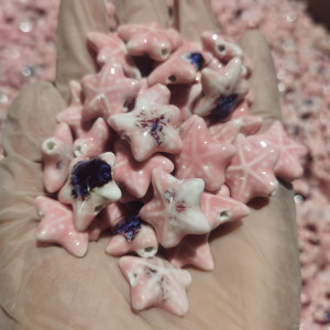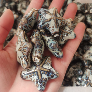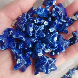 陶瓷海星高温窑变散珠配件串珠手工diy瓷珠手机链五角星手链项链