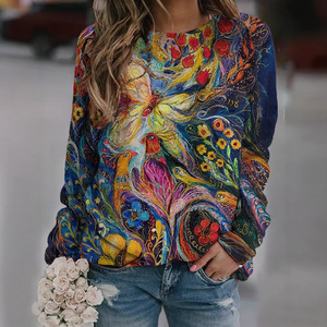 欧米の外国貿易の秋冬の新型の婦人服のカジュアルなファッションのゆったりしている民族の風の復古の長袖の丸首のカバーの頭の衛衣
