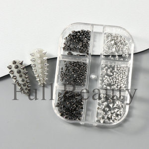 国境を越えた新しいネイルアクセサリー6格ケース黒銀リベットパンク子弾頭ネイルアクセサリー卸売りnail
