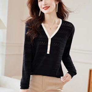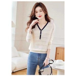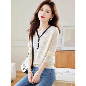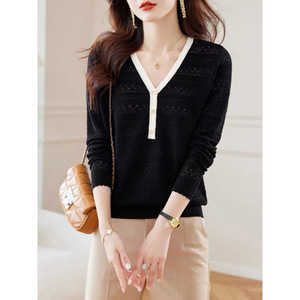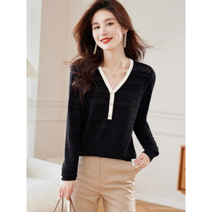 2025秋冬新款韩版女装v领针织衫长袖薄款毛衣打底衫外穿小衫上衣
