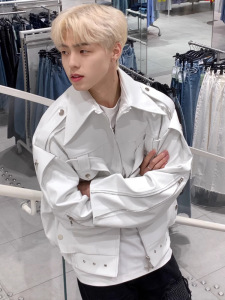 アメリカのレトロな高街の白い革の服のコートの男性の春秋のタイプのファッションのブランドの小さい大衆の高級感の短い機関車の服のジャケット