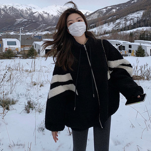 子羊の毛の綿毛の上着の女性の秋冬の百合は保温のデザイン感を厚くします。
