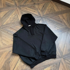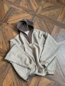 Cleanfitグレーのパーカーの男性用帽子と秋冬の毛糸のつなぎ合わせのデザイン感があります。