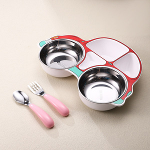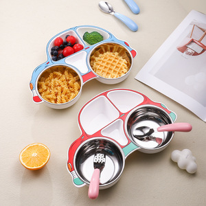 304ステンレスの子供の車の食事の皿は赤ちゃんの補助的な食事の碗の創意の漫画の分格のプラスチックの皿のセットを分解して洗うことができます。