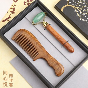 サンダルウッドコーム + フェイスリミングマッサージャー + 黒のギフトボックスギフトバッグ