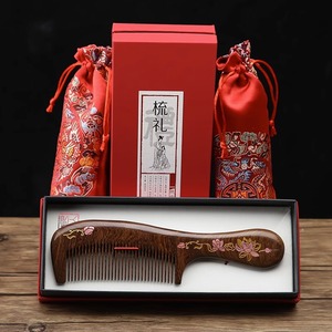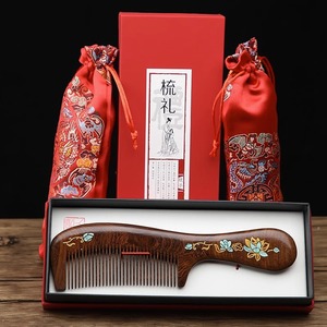 天然檀木くしギフトボックスレディース誕生日プレゼント彼女へママ専用結婚櫛ペアセット