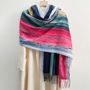新しいストライプの色合わせのグラデーションマフラーの高級感秋冬保温外はストールで染めます。