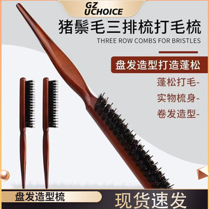美髪の形の豚のたてがみの毛の3列の櫛は毛の櫛を打って化粧をします。