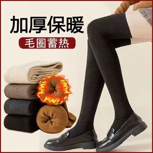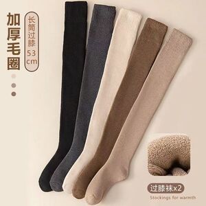 秋冬用裏起毛厚手保温ニーハイソックス 日本風肌に優しい通気性ハイソックス フリース素材着痩せ効果無地ソックス