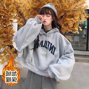 裏起毛暖かいフェイクツーピースストライプ切り替えスウェット2025新作レディースフード付きスウェットゆったりスタイル万能ジャケット