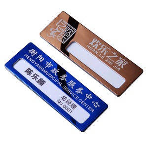 カスタマイズされたステンレス鋼のバッジ、ピンタイプの金属バッジ、名前を変更できる従業員銘板