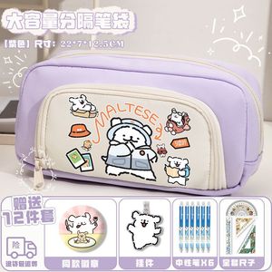 ライン子犬グッズペンケース小学生男女铅笔収纳文房具ケース中学校大容量高颜値可爱い
