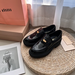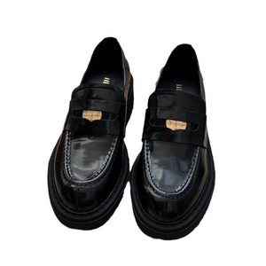 レトロな本革の金貨の楽福の靴の女性の春秋の正確な字は高くなります。