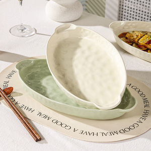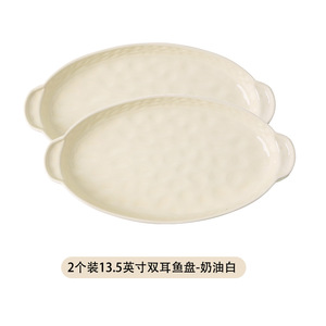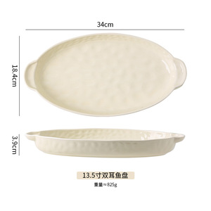 クリーム風13.5インチ両耳魚盤楕円形セラミック皿トレイ大蒸魚皿