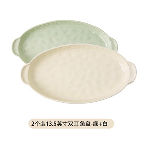 2パック 13.5inch バイノーラルフィッシュプレート (クリームグリーン + クリームホワイト)