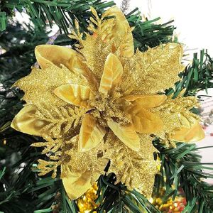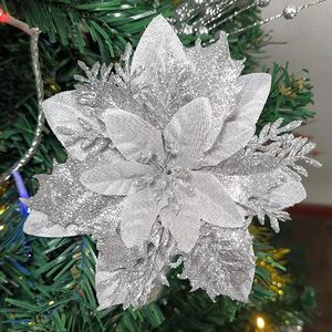 国境を越えて人気のある14cmクリスマス花人工一品紅花飾りクリップと茎クリスマスツリー花輪飾り