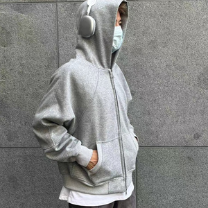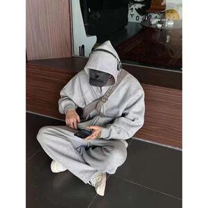 2025年ヨーロッパとアメリカのクロスボーダー新作秋冬アメリカンスタイル無地ルーズフード付きスウェットシャツ、男女兼用、同じスタイルのスウェットシャツジャケット