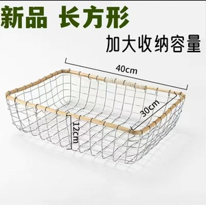 鉄線編みバスケット 手作り 鉄工芸 ヴィンテージ 北欧風 スナック パン フルーツ 雑貨 収納