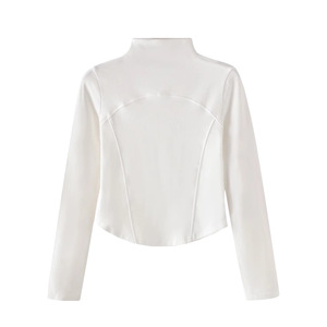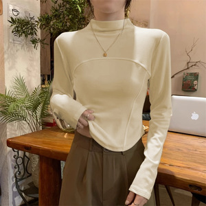 白の中に半高襟のシャツを着て、女性の秋冬の通勤気質の高級感があります。