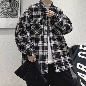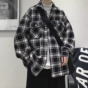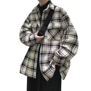 レトロな格子のジャケットの男性の秋の香港風の韓国版の潮のブランドの高い街のごろつきのかっこいいコートのデザイン感の小さい大衆のゆったりしている上着