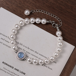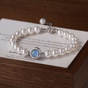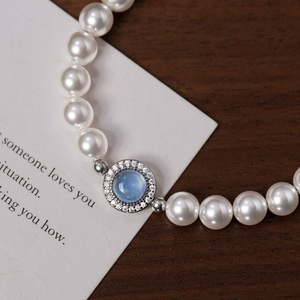 納蘭s 925純銀ラウンドダイヤモンド海藍宝施家珠珠ブレスレット小衆フランス式軽豪華手飾り女s 6826