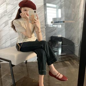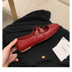 ブドウのお母さんのstudio leeの利口な丸い頭の双は赤い羊の皮の浅い口の小さい低いかかとのメアリーの珍の靴の女性を掛けます。