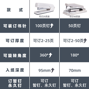 得力360度可旋转订书器中缝骑马钉订书机订学生作业本定书机批发