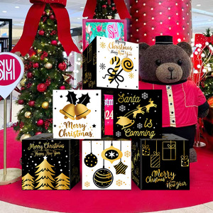 クリスマス装飾ギフトボックスの店頭デパートのショーウインドーのシーンにクリスマスツリーの下に飾られたギフトボックス