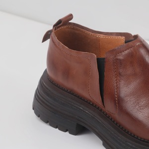 ブラウンのローファー、本革、ラウンドトゥ、レディース、深口、小さめ革靴、英国風レトロ、羊革、おしゃれで万能なレディースシューズ