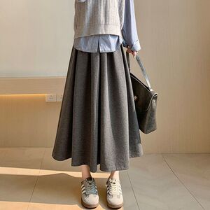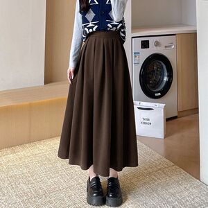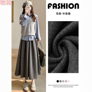H 8aの毛は百タックの半身のスカートの女性の中で長いタイプの秋冬の新型の高い腰はやせているa字のスカートの小さいサイズの傘のスカートを現します。