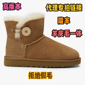 冬季女士羊皮毛一体雪地靴短筒纽扣3352木扣款经典低帮加绒保暖鞋