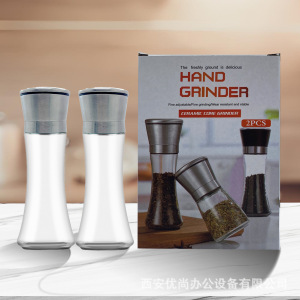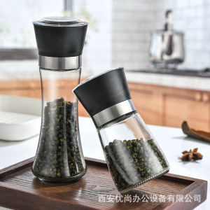 国境を越えた現物販売 手動ペッパー グラインダー(黒胡椒、山椒、海塩用) 調味料ボトル ガラス製グラインダーボトル