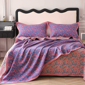 純綿糸布床カバーブランケット三点セット成人家庭用タオルケット四季通用機水洗いシーツ