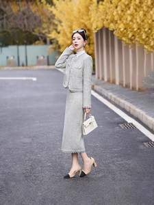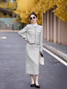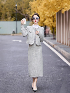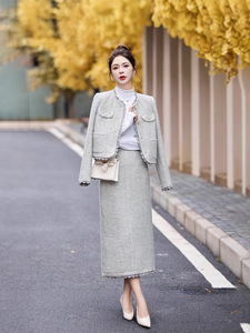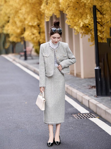 社交界の淑女風スーツ2025新作ライトラグジュアリーファッション冬の高級婦人ウール風気質ツーピースセット