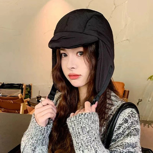 ダウン雷鋒帽子マフラー一体女性秋冬に大きな頭を厚くして防風雪耳アヒルの舌を保護して保温する