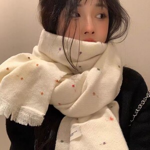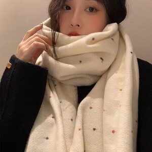 虹の砂糖の点の小さい大衆のマフラーの女性の秋冬の2024の新型はカシミヤのマフラーのマントの両用の雰囲気の点をまねます。