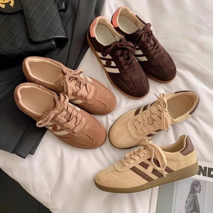 牛革版カラーブロックデューティトレーニングシューズ レディース 多用途 快適 ソフトソール スポーツシューズ 学生 新学期 フラットソール レースアップ スニーカー 通気性