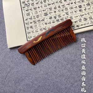 白檀の歯が細く彩られた双魚月型の櫛、細かい歯で髪を滑らかにする櫛、ヘアケア用櫛、女性へのギフト、携帯用櫛