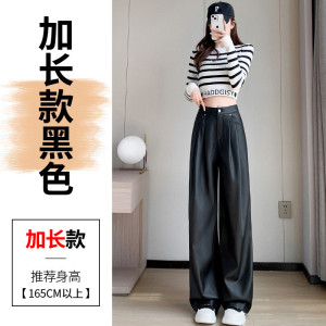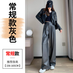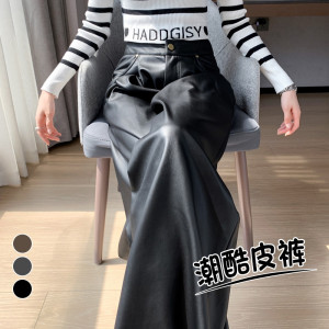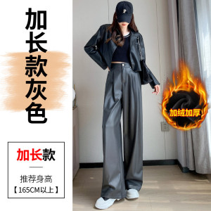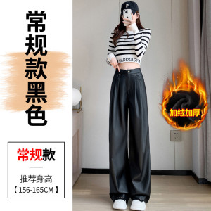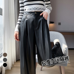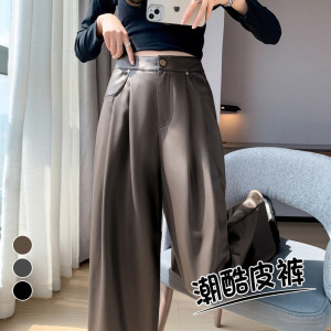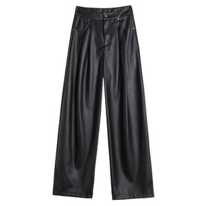 在庫あり レディースレザーパンツ 2025春秋新作 裏起毛 ハイウエスト カジュアルパンツ ソフトレザー PUレザー トレンド クール ワイドパンツ
